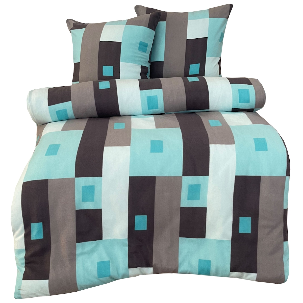 2 tlg.Renforce Bettwäsche 100% Baumwolle 135x200cm Viereck Effekt Türkis Blau