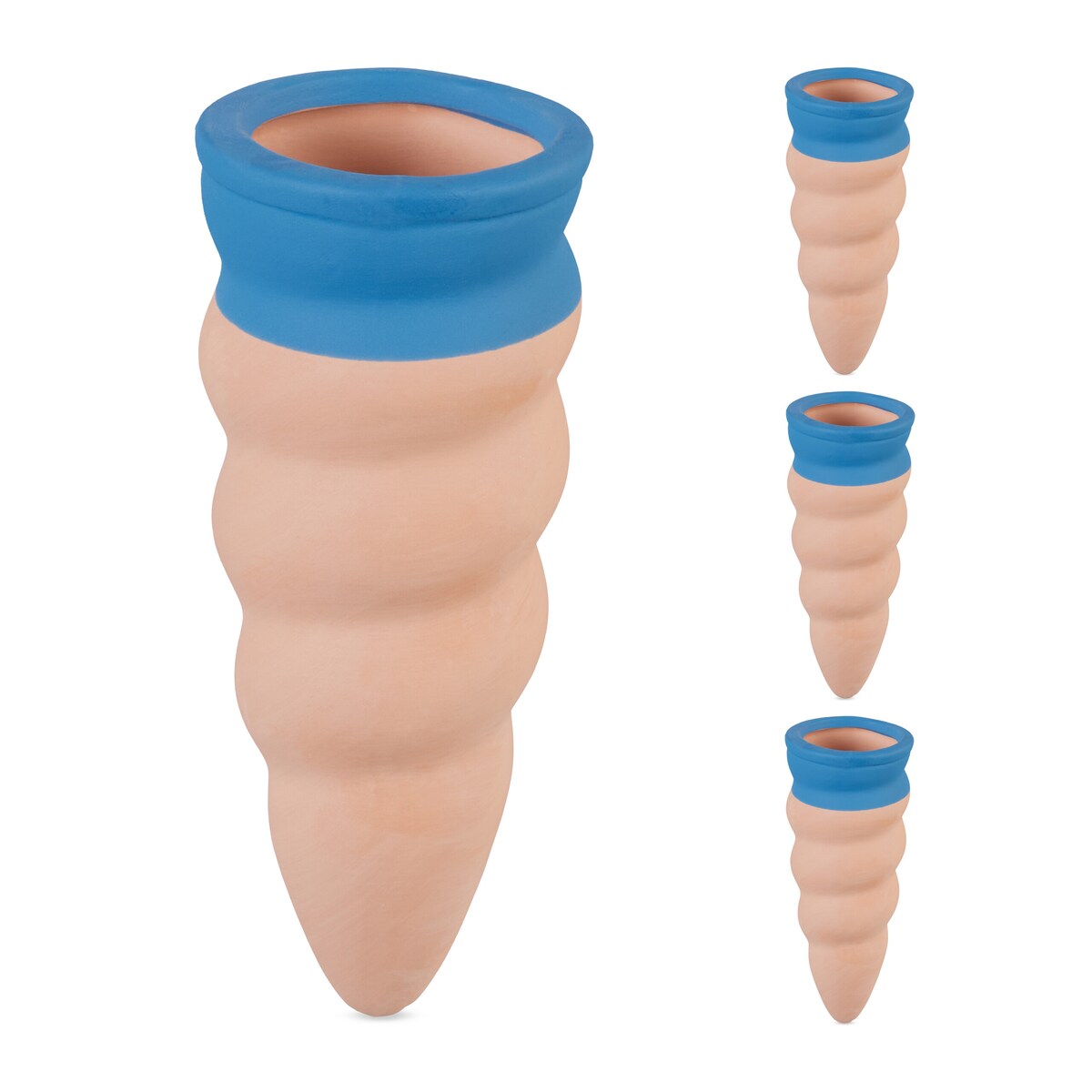 Relaxdays Tonkegel Bewässerung, 4er Set, für 1,5L Flaschen, Gießhilfe für Zimmerpflanzen, Tonspitzen, terrakotta/ blau