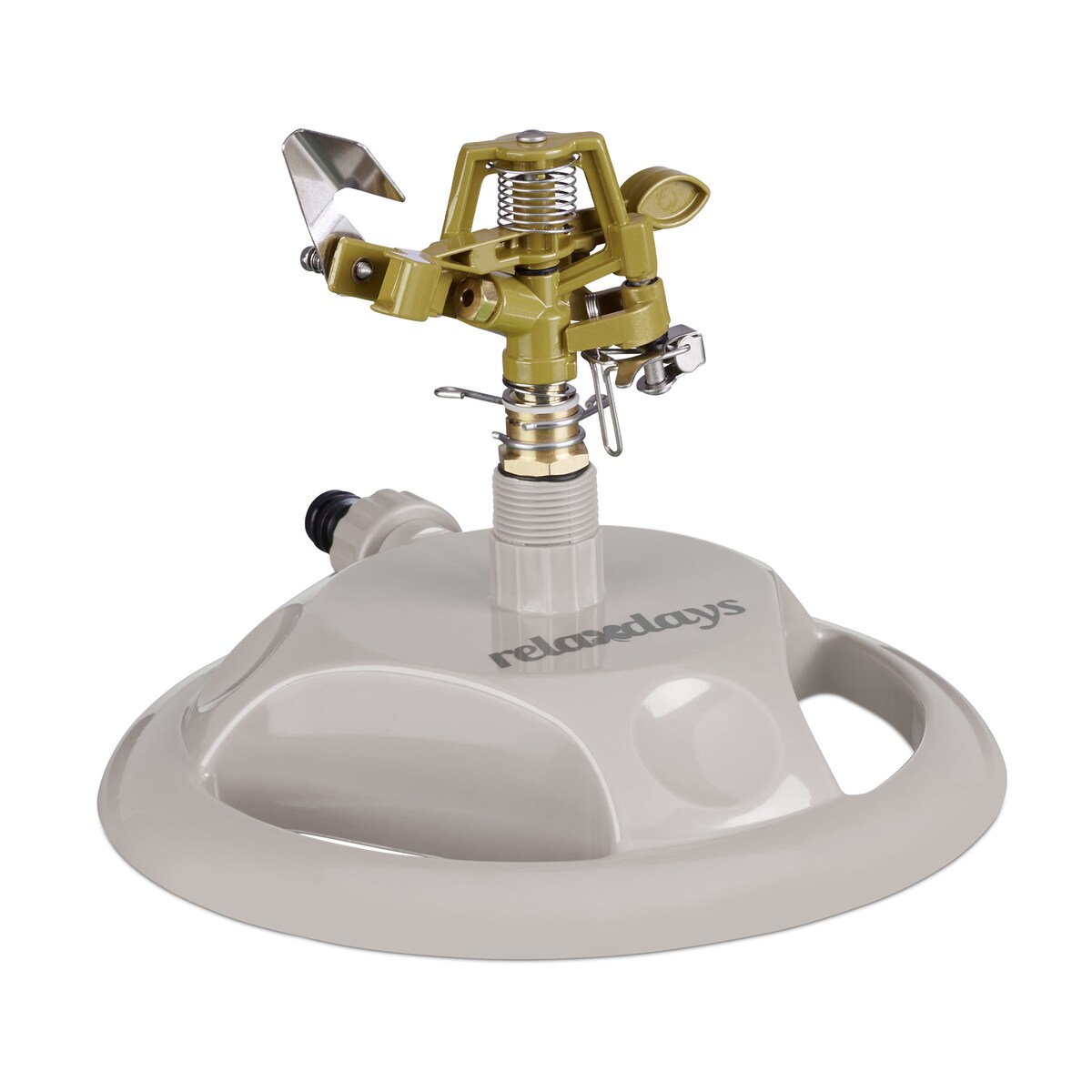 Relaxdays Rasensprenger Impulsregner, Bewässerung großer Flächen bis 450 m², 12 m Reichweite, 360°, Kreisregner, grau