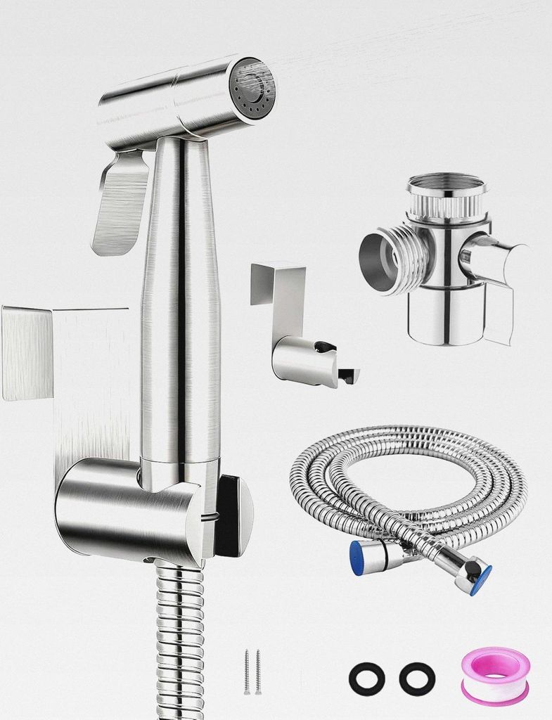 Bidet Edelstahl Handbrause Set, Badezimmer - Bidetaufsatz mit mit Wasserhahn-Spender, Federschlauchhaken, Wasserhahnspender, Badezimmerhygiene und ...