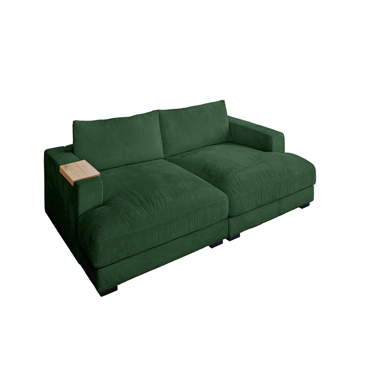 KAWOLA Big Sofa XL MADELINE mit Holztablett natur für Armlehne Cord smaragd
