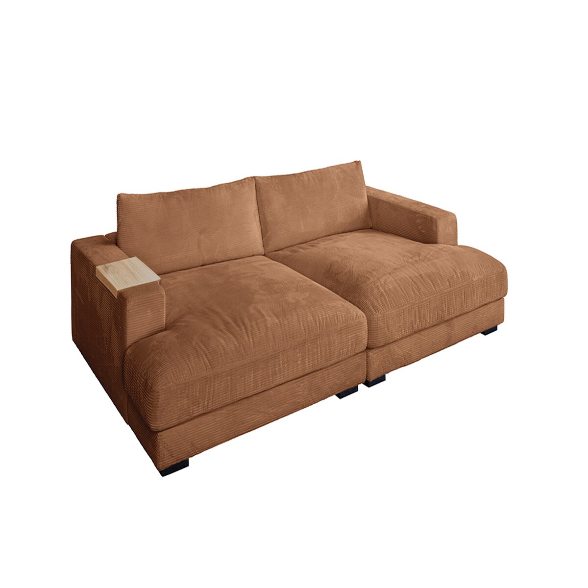 KAWOLA Big Sofa XL MADELINE mit Holztablett natur für Armlehne Cord rost