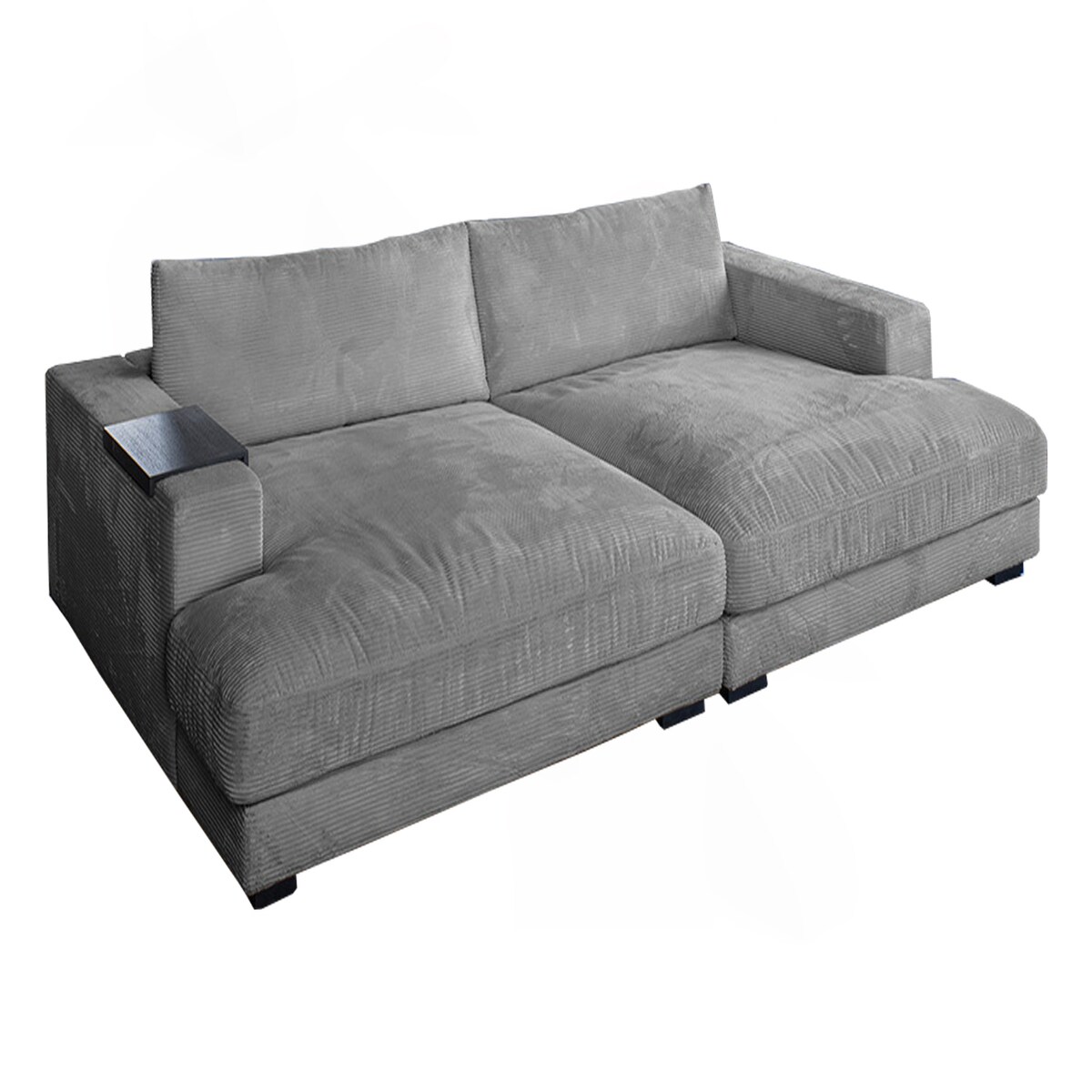 KAWOLA Big Sofa MADELINE mit Holztablett schwarz für Armlehne Cord grau