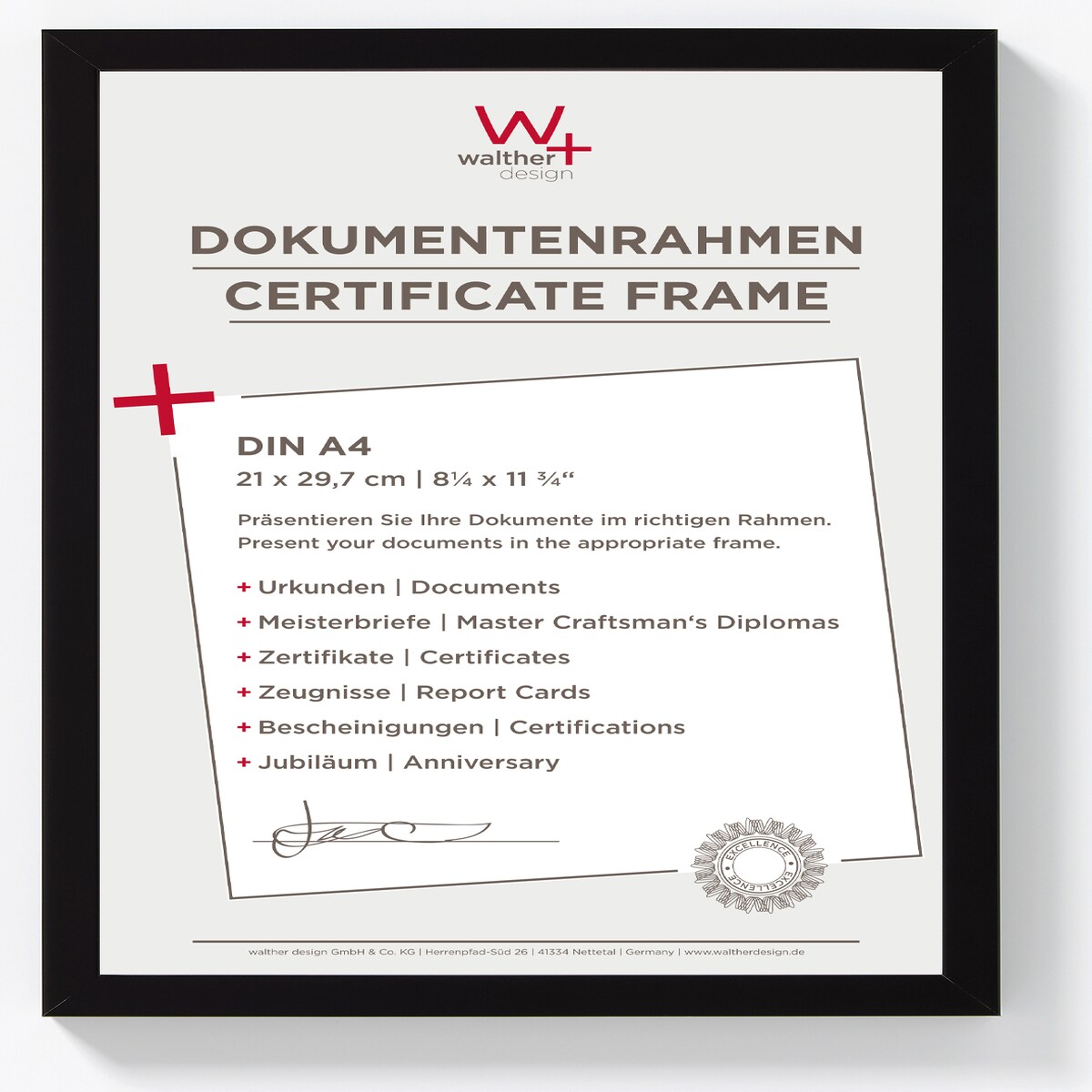 walther + design Peppers Holz Bilderrahmen 21x29,7 cm (DIN A4) SCHWARZ