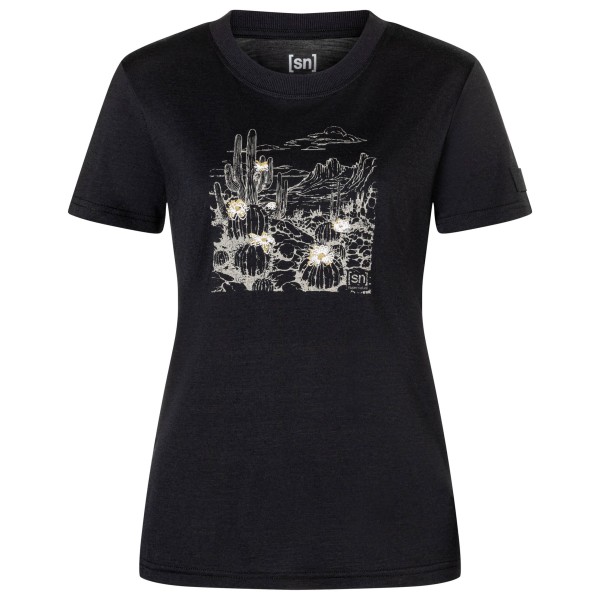 super.natural Cactus World Bio Jersey Tee Merinoshirt Damen (Gr S |schwarz/ various)