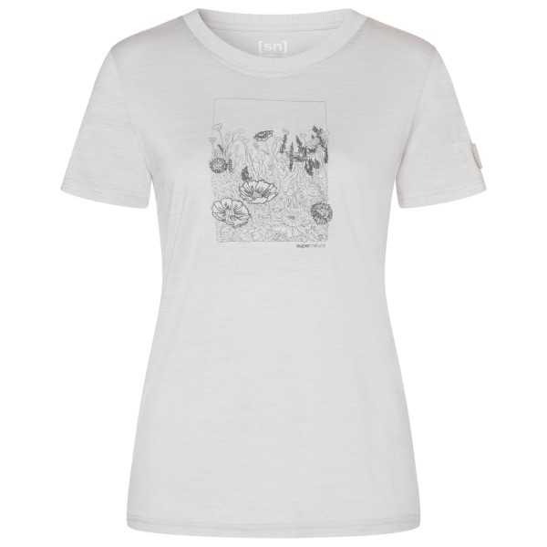 Merinoshirt super.natural Flower Field Bio Jersey Tee Damen (Gr M |weiß/grau)