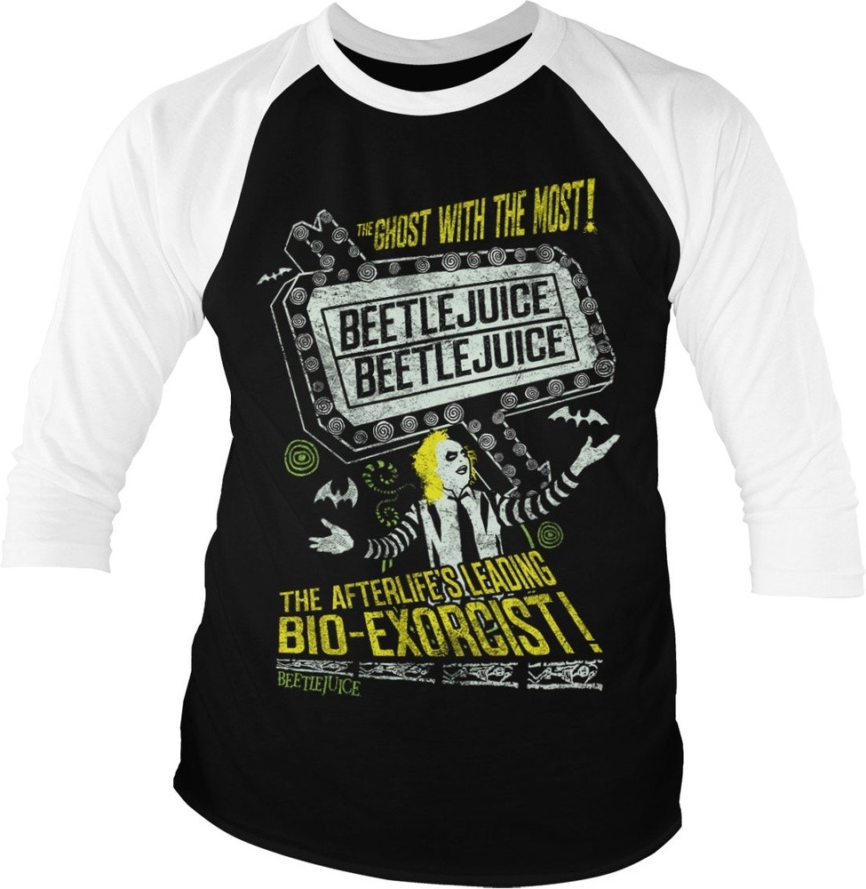 Beetlejuice The Afterlife's Leading Bio-Exorcist Baseball 3/4 Sleeve Tee T-Shirt Weiß-Schwarz - Herren / Unisex