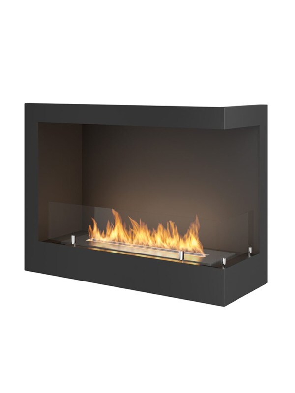 OutInFire CORN 600 – Eck-Biokamin, eingebauter Bioethanol-Kamin. Rechte Öffnung – mit Glas