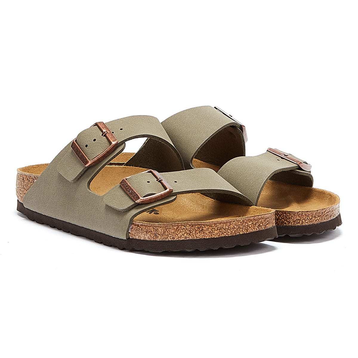 Herren Womens Birkenstock Arizona Birko Flor Nubuck Stein Sandalen - (Grau)
