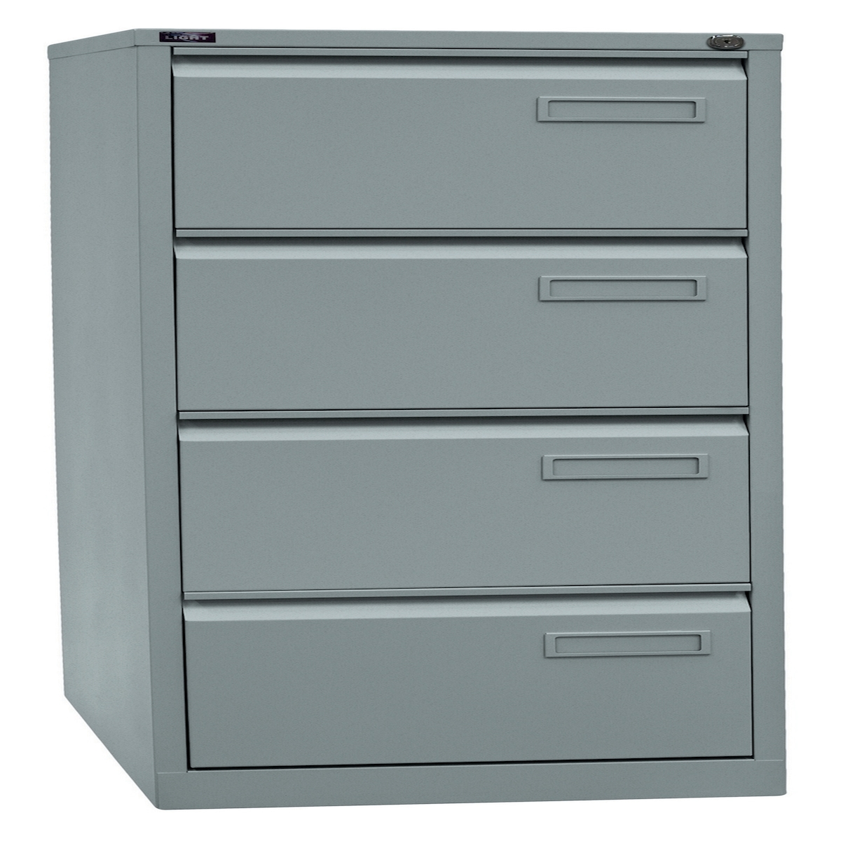 BISLEY Light Hängeregistraturschrank mit Schloss aus Metall in silber, 4 Schubladen, einbahnig - Hängeregisterschrank abschließbar, Hängeregistratur