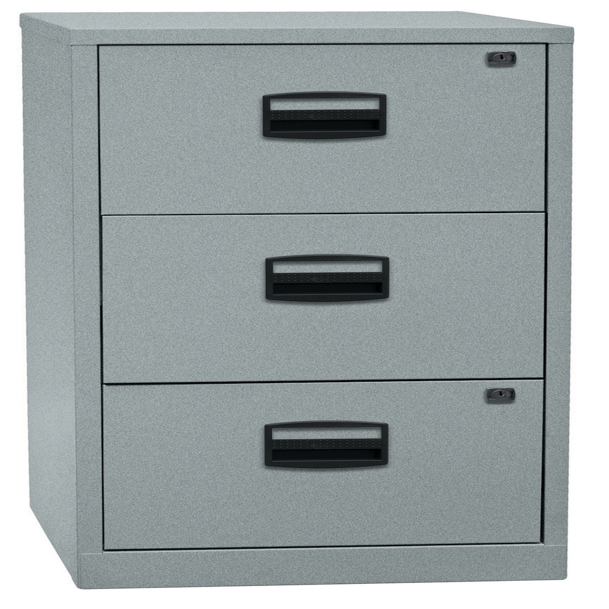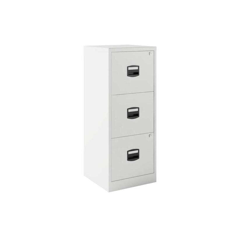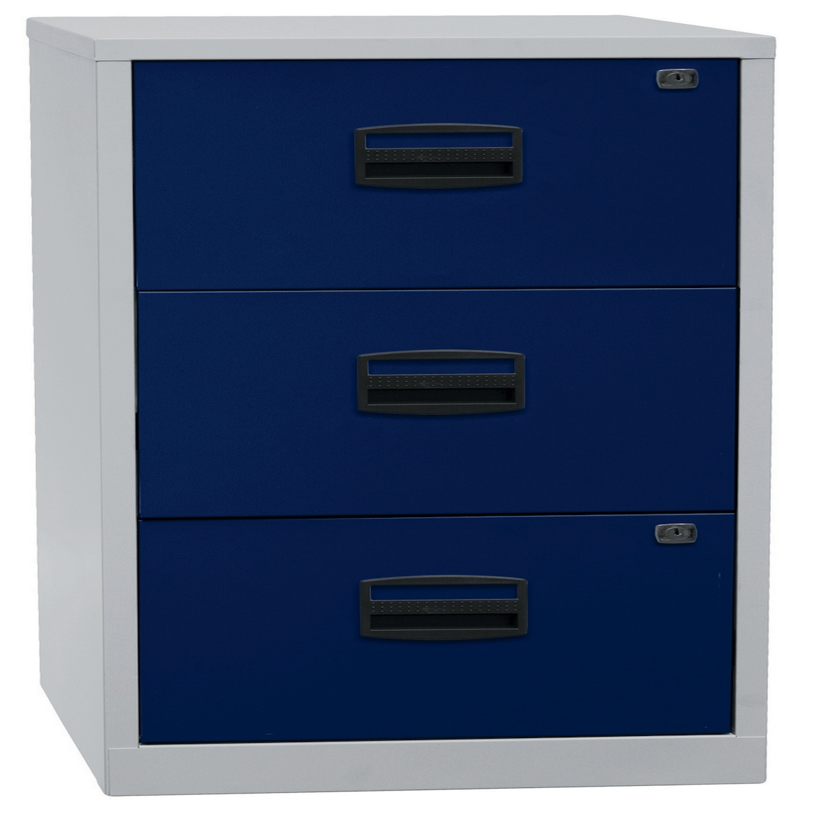 Bisley Home Hängeregistraturschrank mit Schloss aus Stahlblech, 3 Schubladen, einbahnig - Hängeregisterschrank abschließbar, Hängeregistratur für
