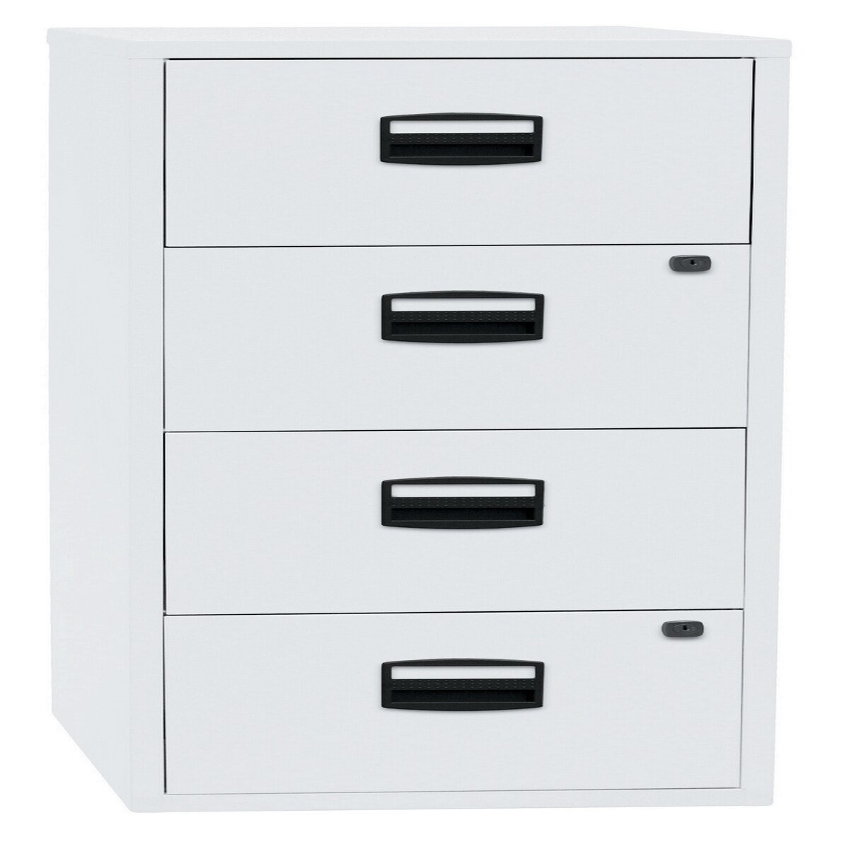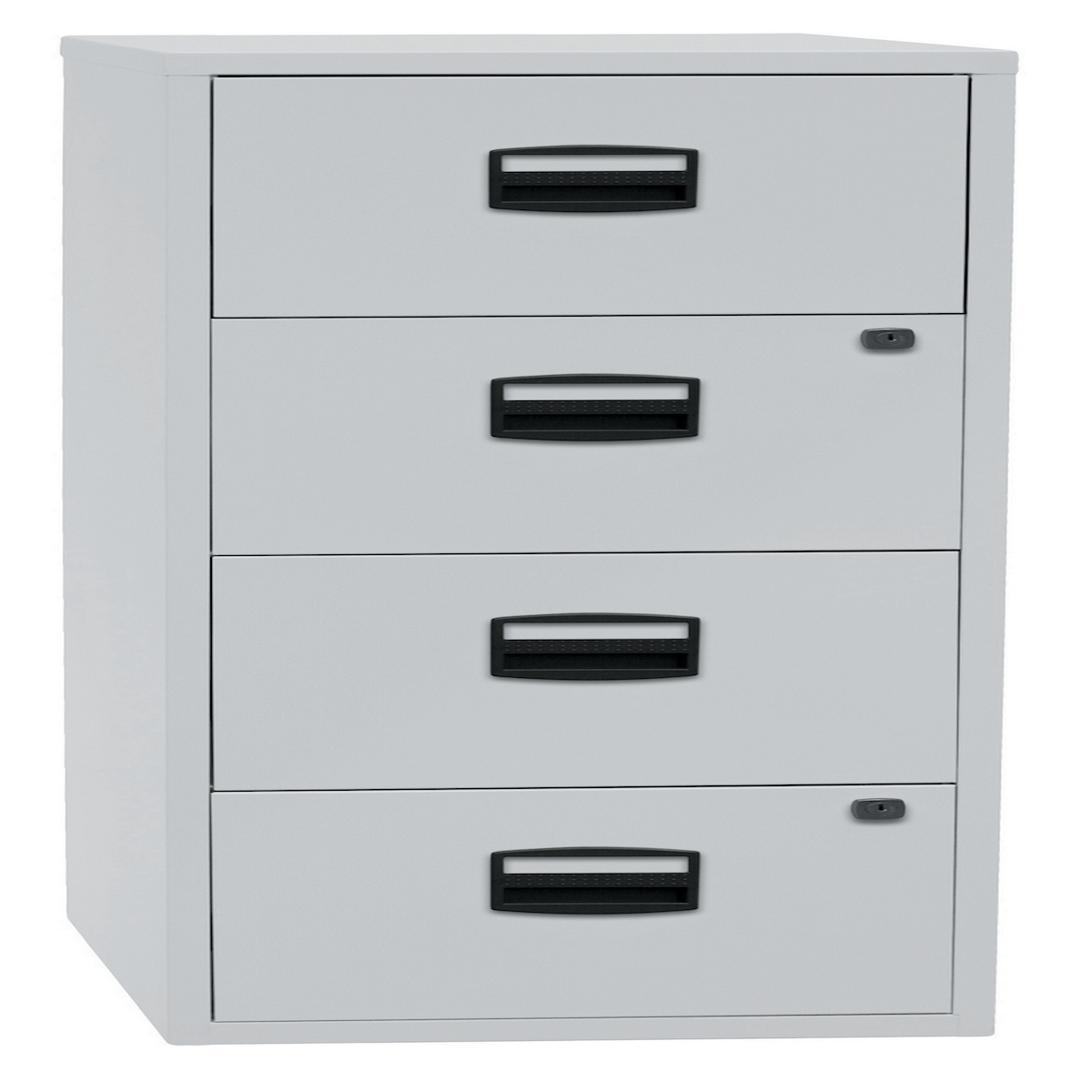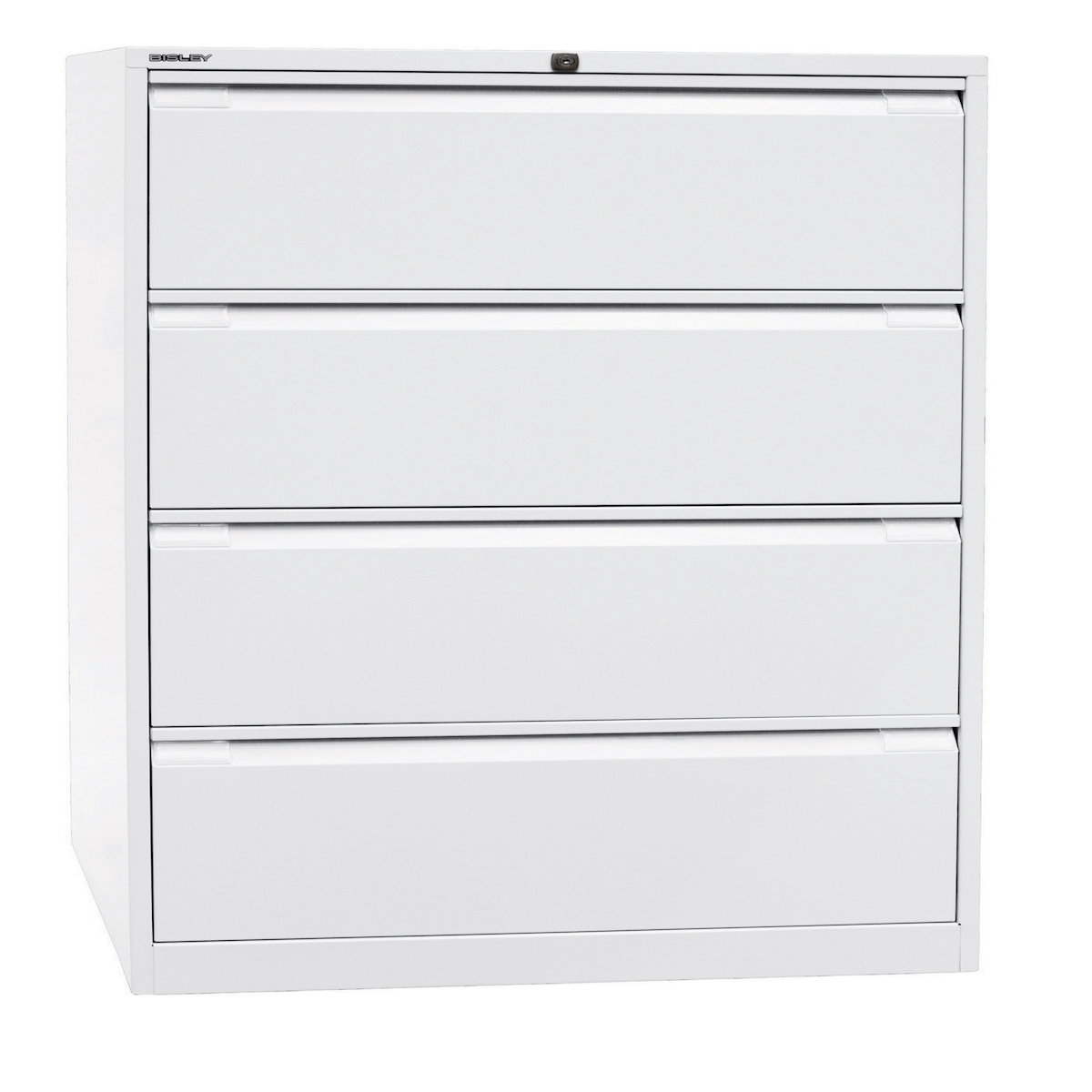 Bisley Home Hängeregistraturschrank mit Schloss aus Stahlblech, 4 Schubladen, einbahnig - Hängeregisterschrank abschließbar, Hängeregistratur für