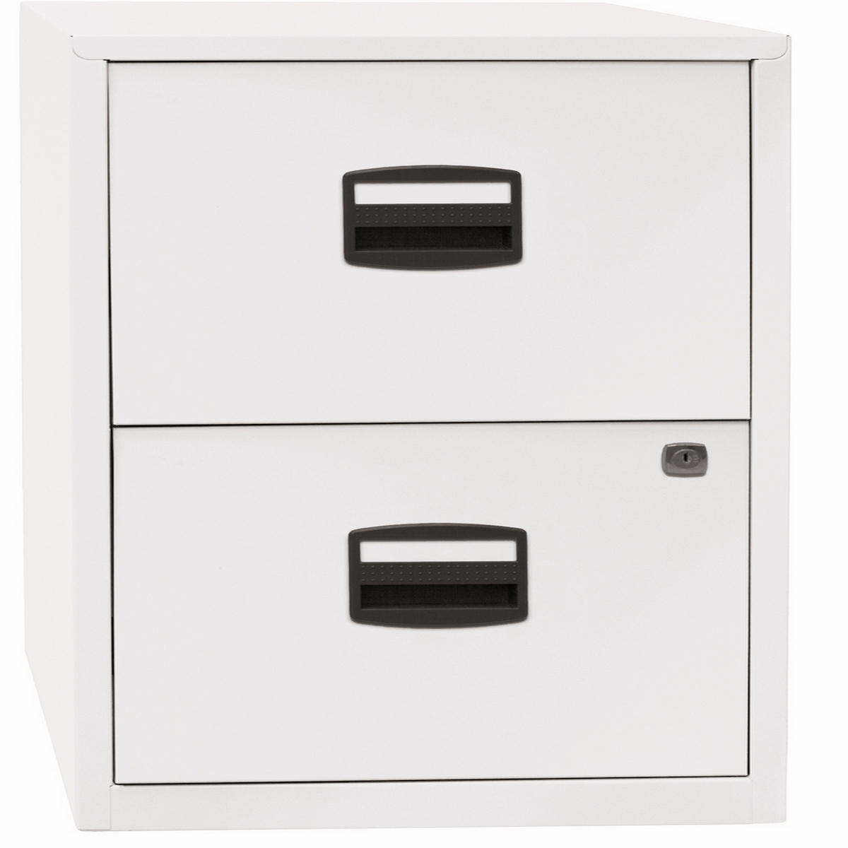 Bisley Home Filer Hängeregistraturschrank mit Schloss aus Stahlblech, 2 Schubladen, einbahnig - Hängeregisterschrank abschließbar, Hängeregistratur