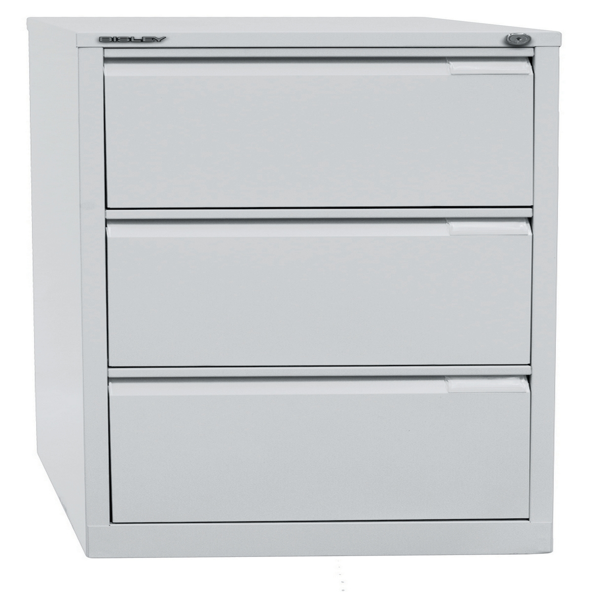 BISLEY Hängeregistraturschrank mit Schloss aus Metall in lichtgrau, 3 Schubladen, einbahnig - Hängeregisterschrank abschließbar, Hängeregistratur für