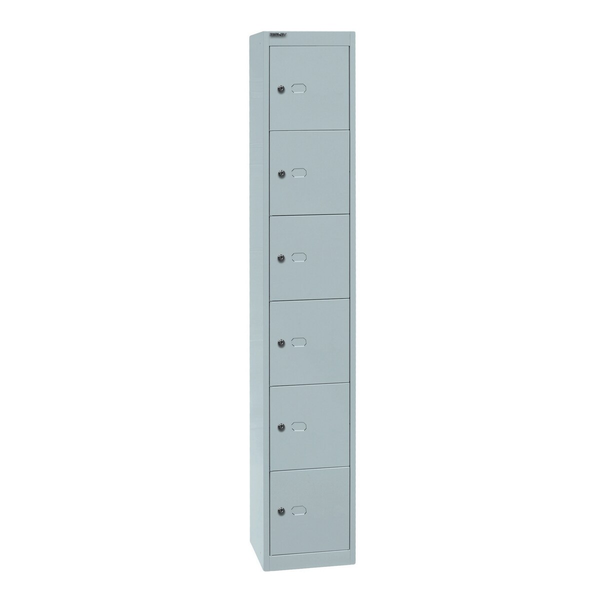 Bisley Schließfachschrank Office, 1 Abteil, 6 Fächer, Farbe silber, Maße (HxBxT): 1.802 x 305 x 305 mm