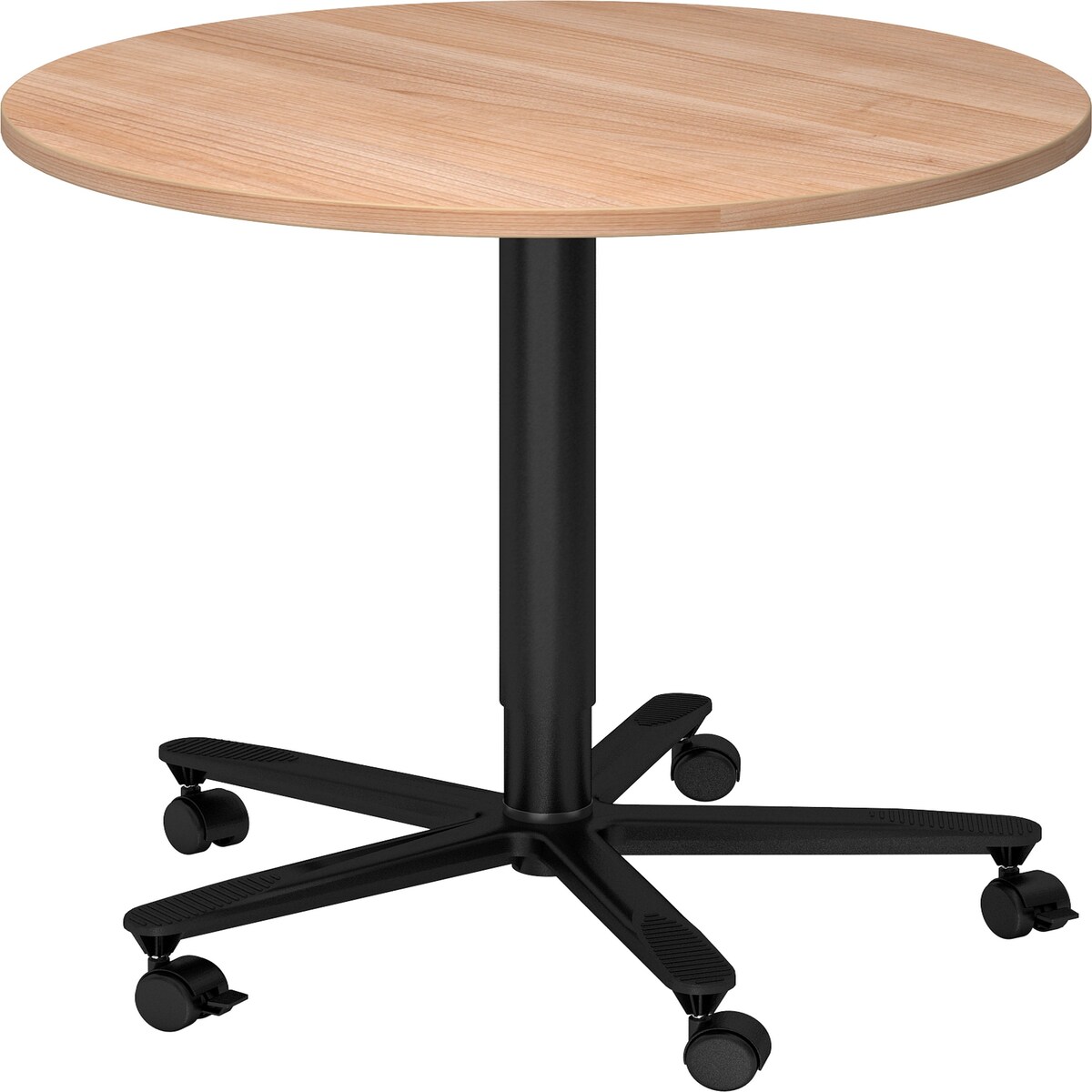 bümö Säulenhubtisch höhenverstellbar, Stehtisch Büro, Bistrotisch rund 80 x 80 cm - Besprechungstisch Nussbaum, Stehtisch Holz-Platte, Säule aus