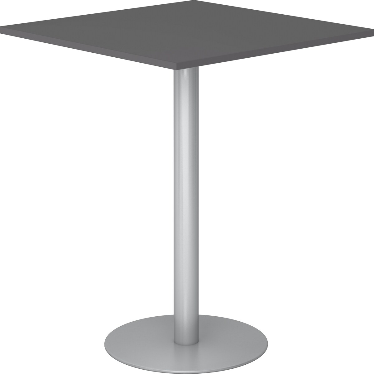 bümö Stehtisch Büro, Bistrotisch eckig 80 x 80 cm - Bartisch graphit, Stehtisch Holz-Platte, Säule aus Metall in silber, Buffettisch, Säulentisch,