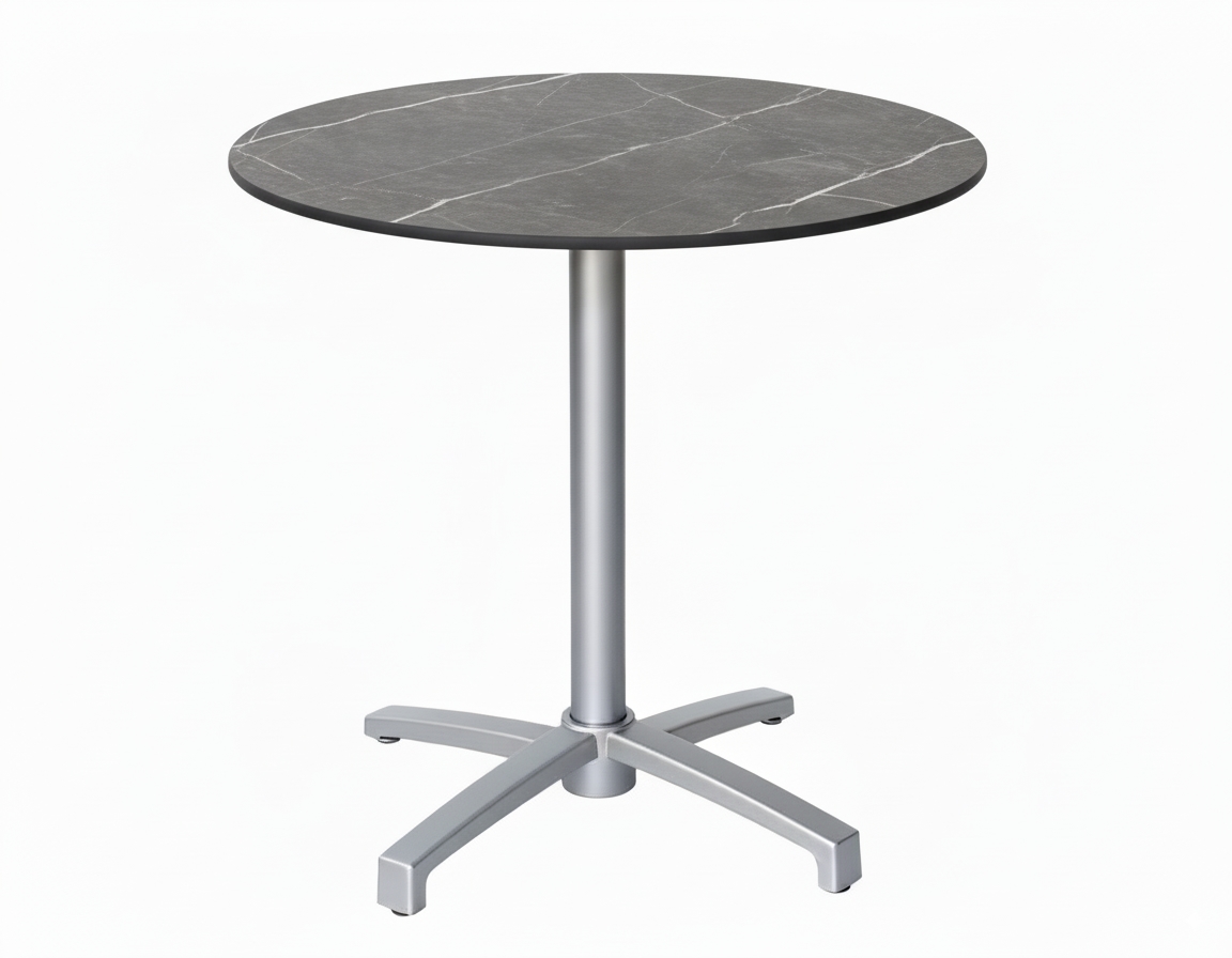 Outdoor-Bistrotisch Falti klappbar silber mit runder Tischplatte Dekor schwarzer Marmor