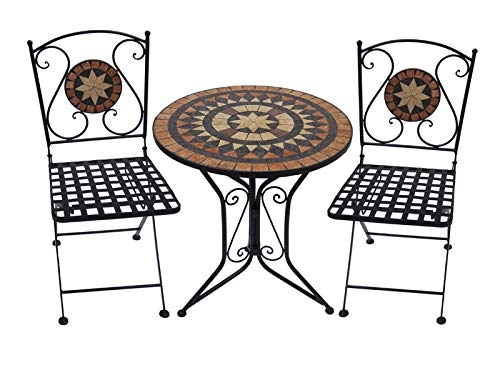 DanDiBo Sitzgruppe Eisen Garten Antik Bistroset Tecla Bistrotisch mit 2 Stühlen klappbar Metall Gartentisch