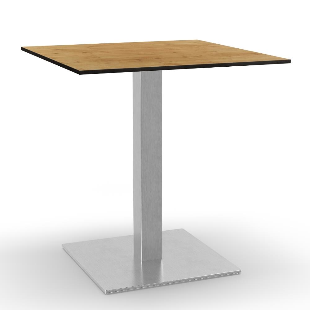Bistrotisch Schweizer Kante massiv Akazie naturfarben 70 cm Säulengestell-eckig silber BRASILIA