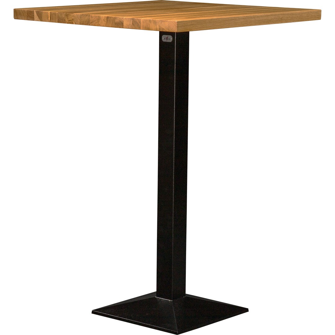 Bistrotisch - Quadratischer Stehtisch - 60 x 60 cm - Zentraler Säulenfuß - Metallgestell - Holz-Tischplatte - Für 2 Personen - Für Café/Bistro