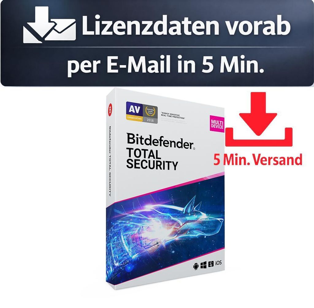 Bitdefender Total Security (5 Device - 1 Jahr) DACH ESD Antivirus Sicherheit 5 Min. Versand als Download per Mail