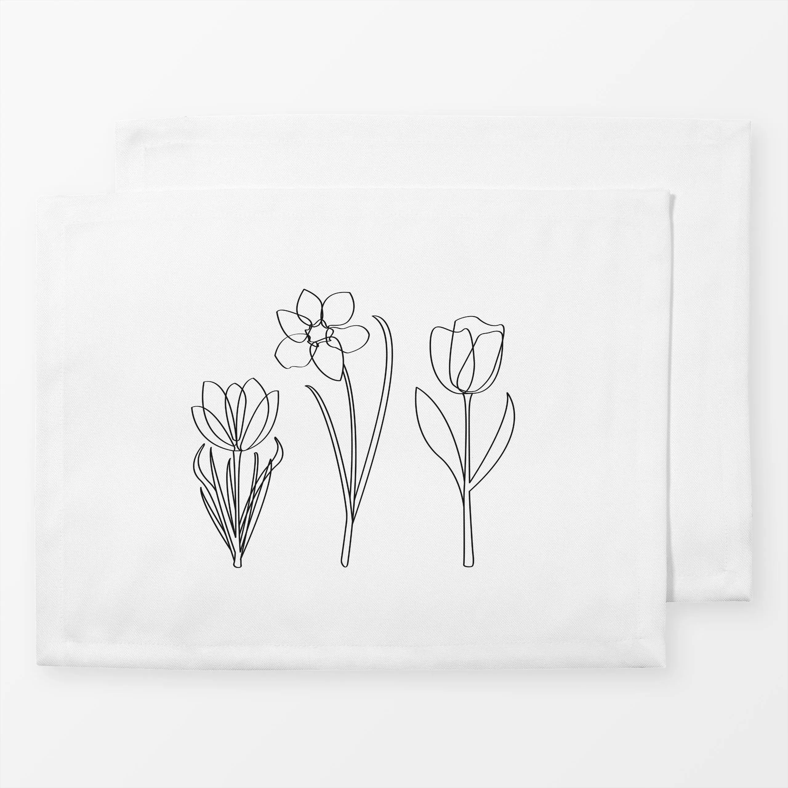 Tischset Lined Spring Flowers black - Blumen & Florales, Frühling - von „Karen Menzenbach"; schwarz, minimal, abstrakt, Blum...
