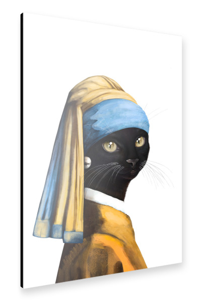 Alu-Dibond "Black cat with a pearl earring" 30x20 cm artboxONE