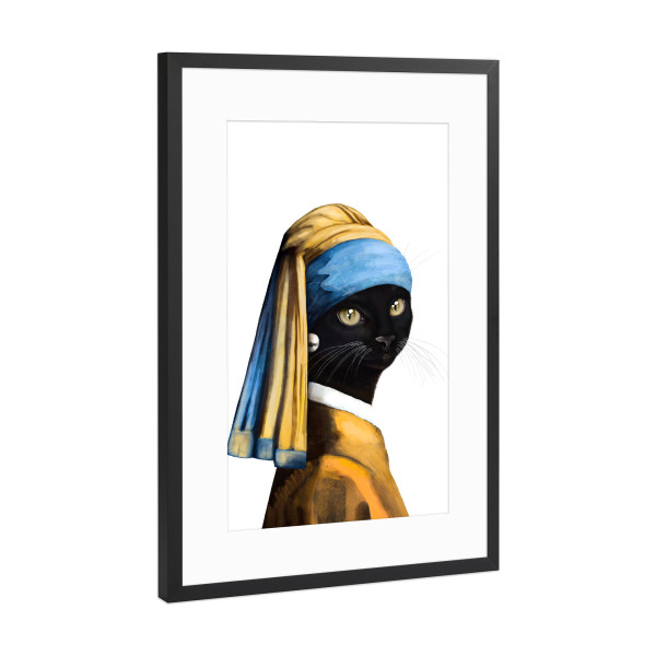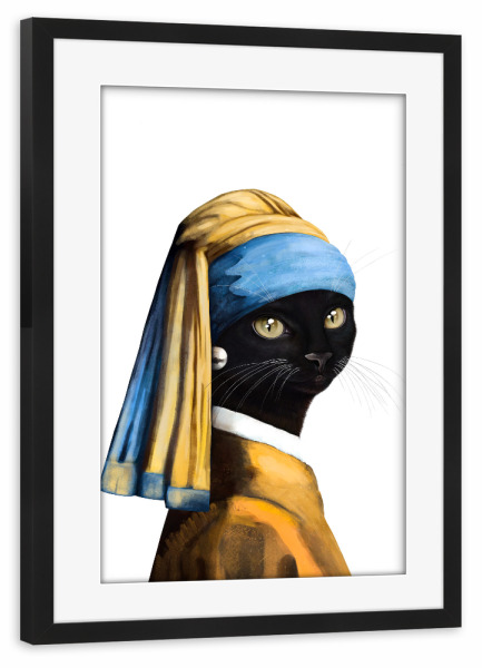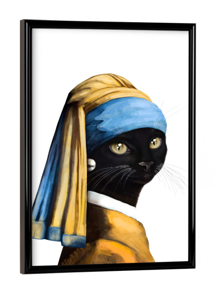 Poster mit schwarzem Rahmen "Black cat with a pearl earring" artboxONE - Für Kinder,Tiere,Fashion,Für Mama,Lustig