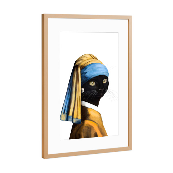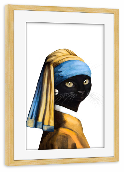 Poster mit Rahmen kiefer "Black cat with a pearl earring" artboxONE - Für Kinder,Tiere,Fashion,Für Mama,Lustig