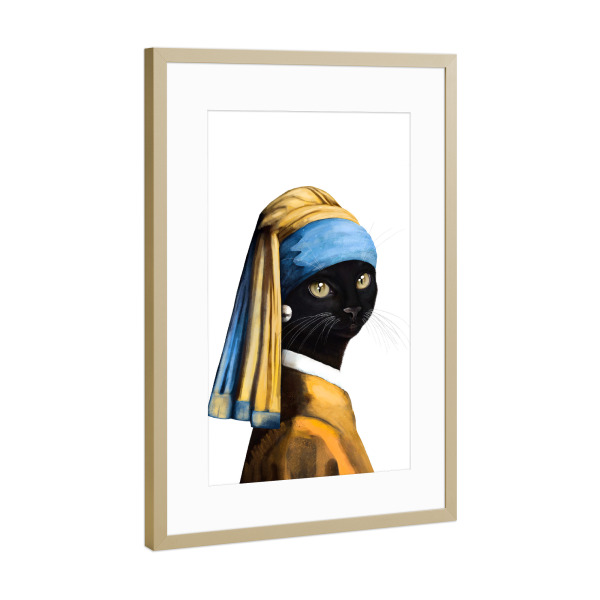 Poster mit Rahmen Gold "Black cat with a pearl earring" artboxONE - Für Kinder,Tiere,Fashion,Für Mama,Lustig