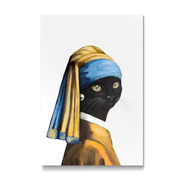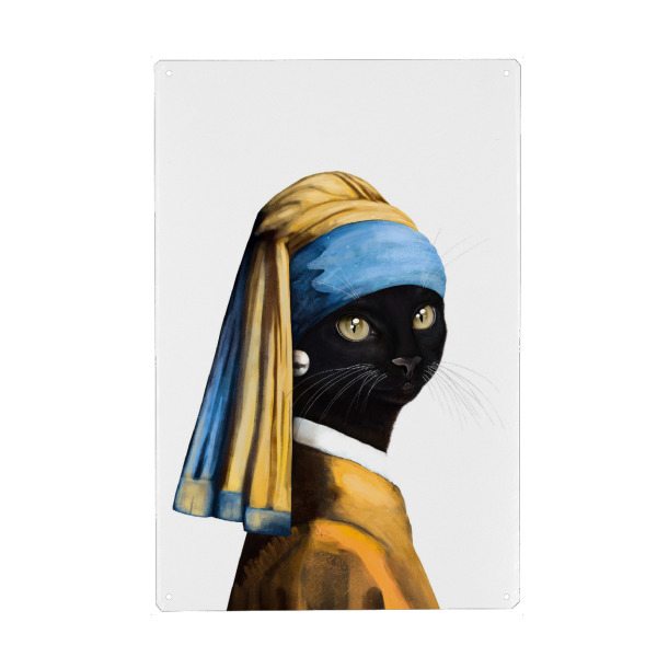 Metall Poster "Black cat with a pearl earring" artboxONE - Für Kinder,Tiere,Fashion,Für Mama,Lustig