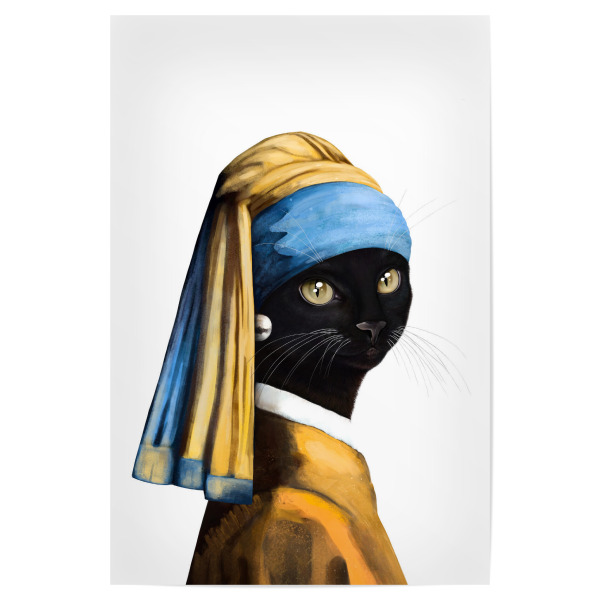 Poster 30x20 cm "Black cat with a pearl earring" artboxONE - Für Kinder,Tiere,Fashion,Für Mama,Lustig