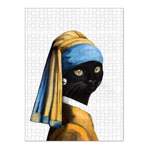 Puzzle Ravensburger "Black cat with a pearl earring" artboxONE - Für Kinder,Tiere,Fashion,Für Mama,Lustig