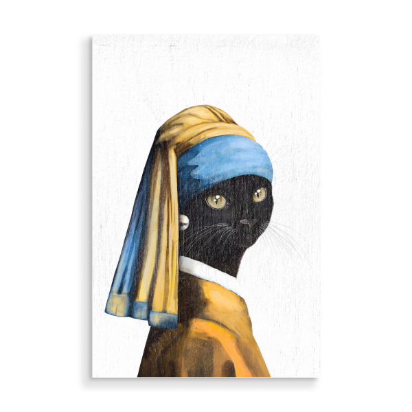 Galerie-Print "Black cat with a pearl earring" 75x50 cm artboxONE