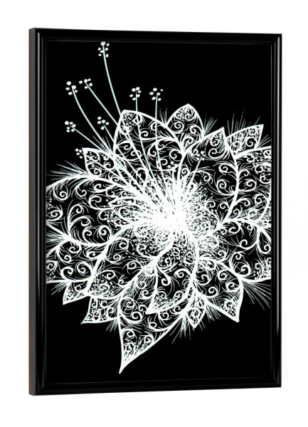 Poster mit schwarzem Rahmen "Orchid Lineart white on black" artboxONE - Floral,Schwarzweiß