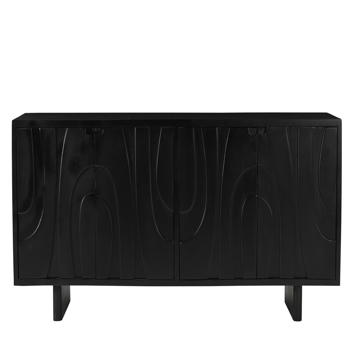 SIT Möbel Sideboard mit 4 Türen | Mangoholz schwarz | B 180 x T 43 x H 76 cm | 14704-11 | Serie BLACK SMOOTH