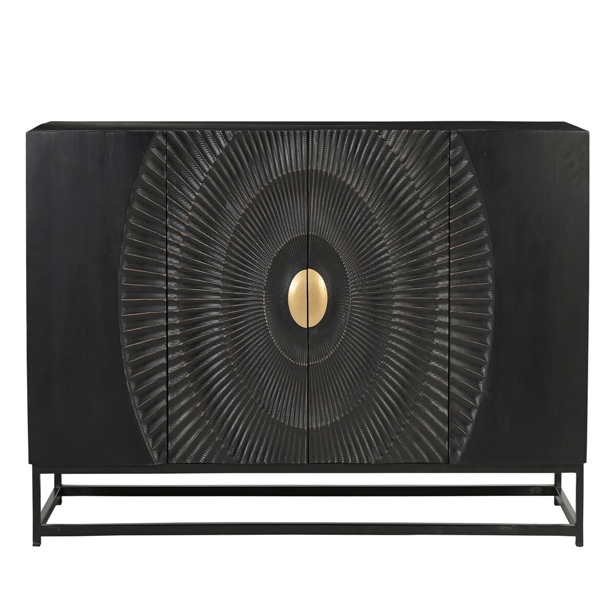 hjh LIVING Sideboard SANTJAGO BLACK SUN L Kommode Schrank Knopfgriff 70.5 x 63.0 x 32.0 cm