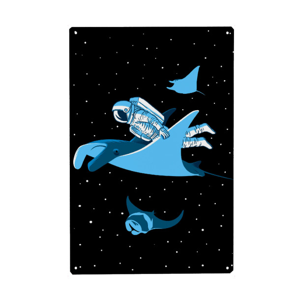 Metall Poster "Astronaut with blanket fish" artboxONE - Tiere,Abstrakt,Galaxy