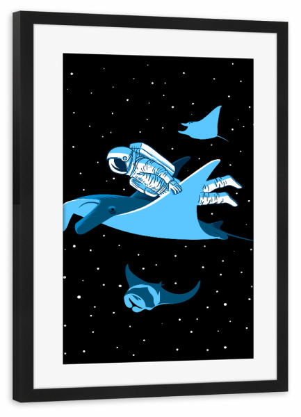 Poster mit Rahmen schwarz "Astronaut with blanket fish" artboxONE - Tiere,Abstrakt,Galaxy