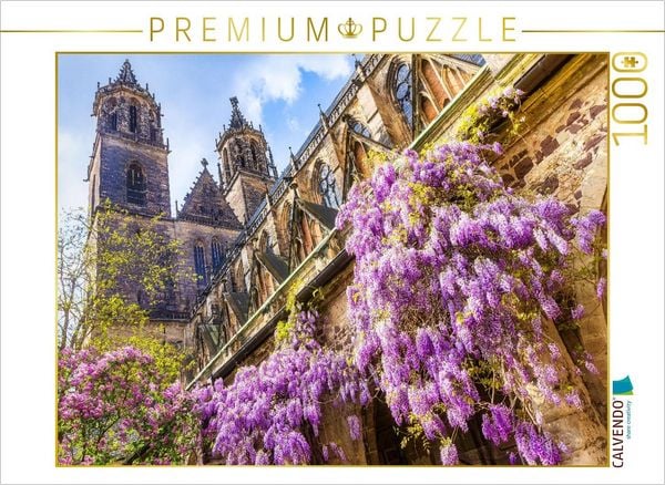 CALVENDO Puzzle Blühender Blauregen im Kreuzgang des Magdeburger Doms | 1000 Teile Lege-Größe 64x48cm Foto-Puzzle für glückliche Stunden