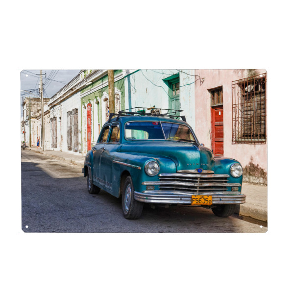 Metall Poster "Kubanische Straße" artboxONE - Automobile - Oldtimer,Cuba,Kuba,Nostalgie,Morbider charme,Morbide - Blechschild