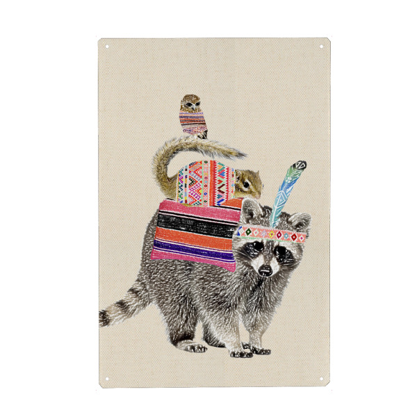 Metall Poster "Waschbär" artboxONE - Für Kinder,Für Kinder - Indianer,Waschbär,Eule,Eichhörnchen,Retro,Vintage,Nostalgie,Witzig - Blechschild