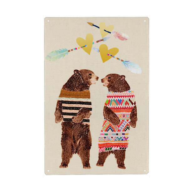 Metall Poster "Tanzende Bären" artboxONE - Liebe - Tanzendebären,Verliebt,Nostalgie,Süß,Retro,Vintage,Liebe,Herzen,Pfeile,Witzig,Leinen - Blechschild