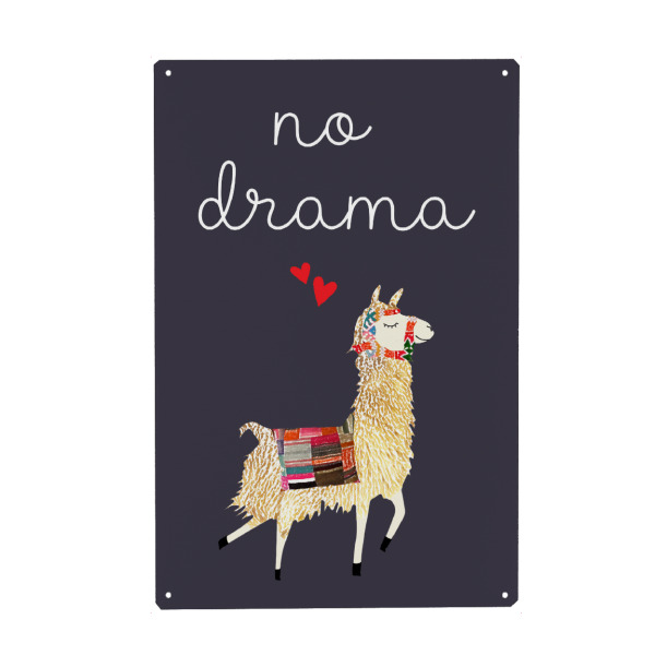 Metall Poster "Kein Drama Lama" artboxONE - Tiere - No drama lama,Süß,Witzig,Spruch,Lama,Alpaka,Kinderzimmer,Nostalgie - Blechschild
