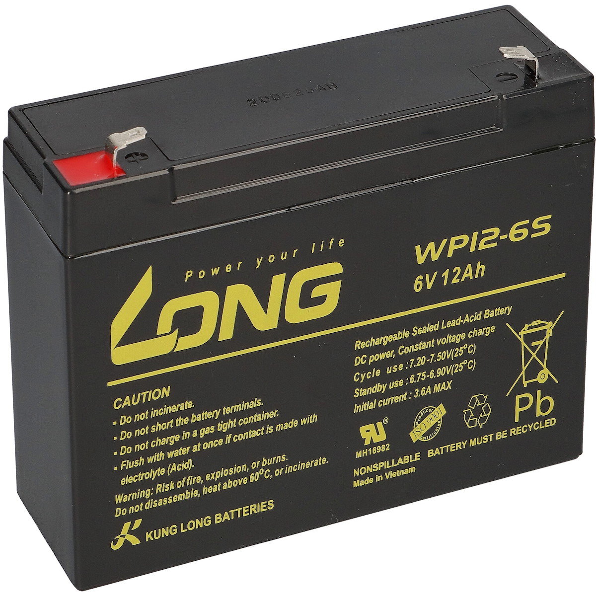 Set - Bleiakku und Ladegerät - 6V 12Ah KungLong Akku 0,6A Lader