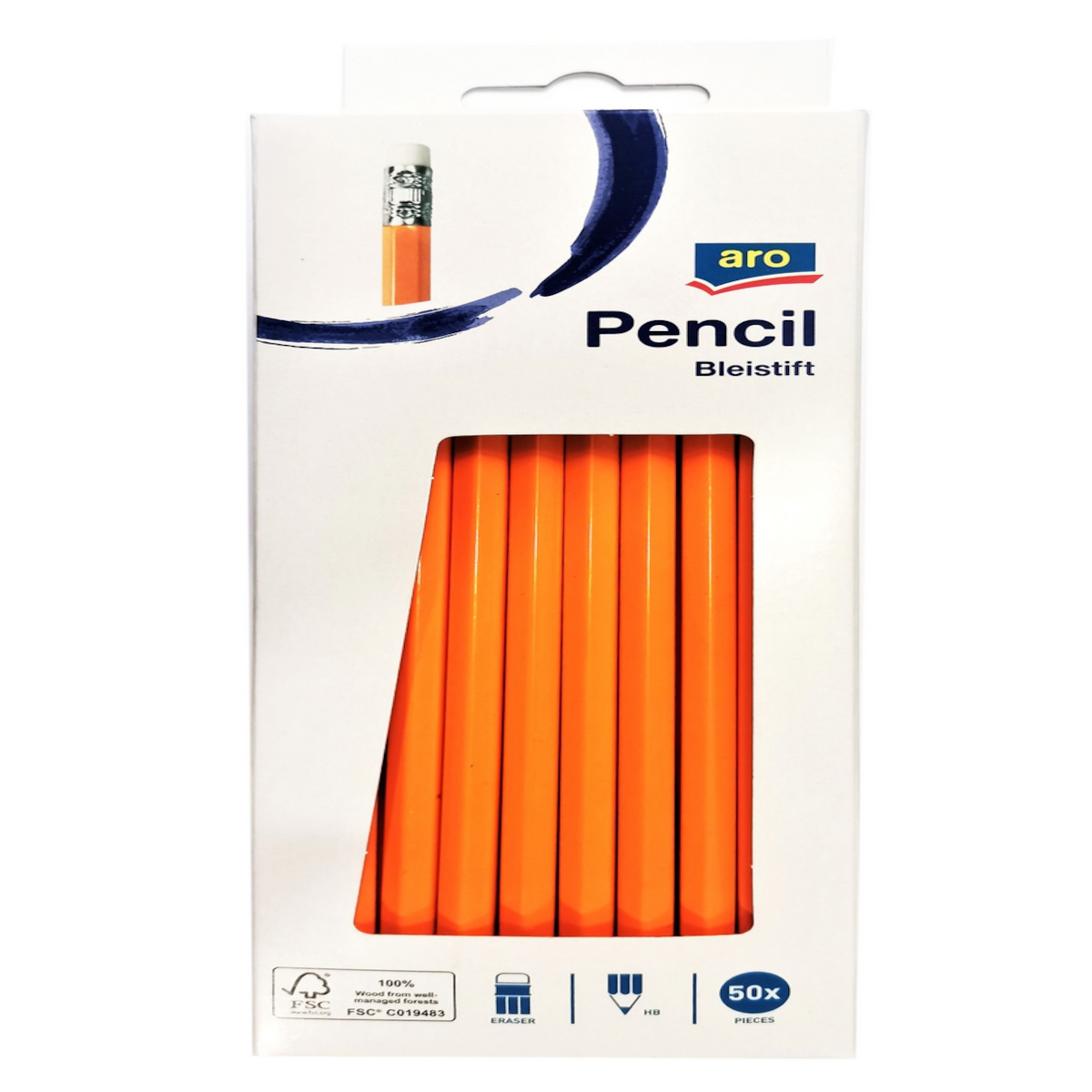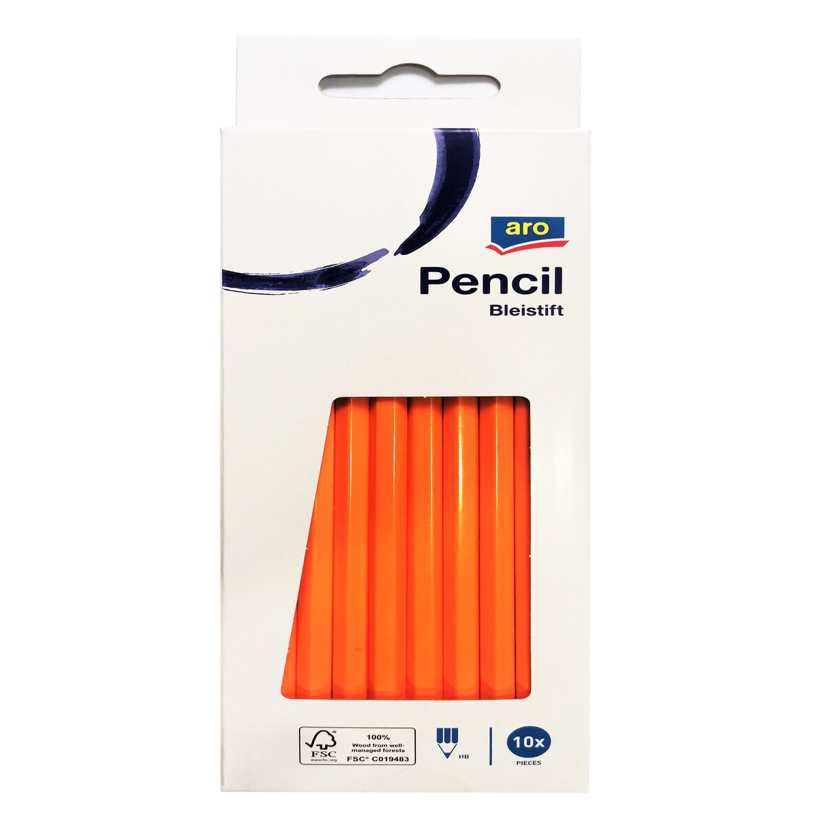 aro Bleistift mit Radiergummi, 2 mm HB Bleistiftmine, Holz, orange, 10 Stück