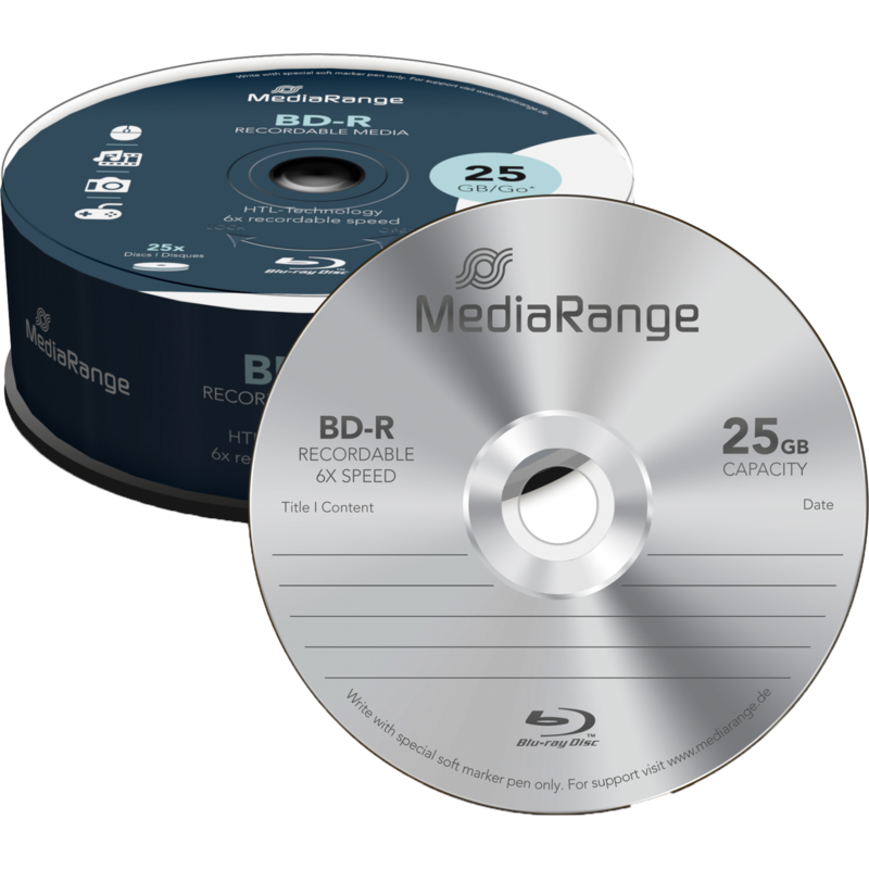 MediaRange BD-R 25 GB Blu-ray-Rohlinge, 6fach, 25 Stück