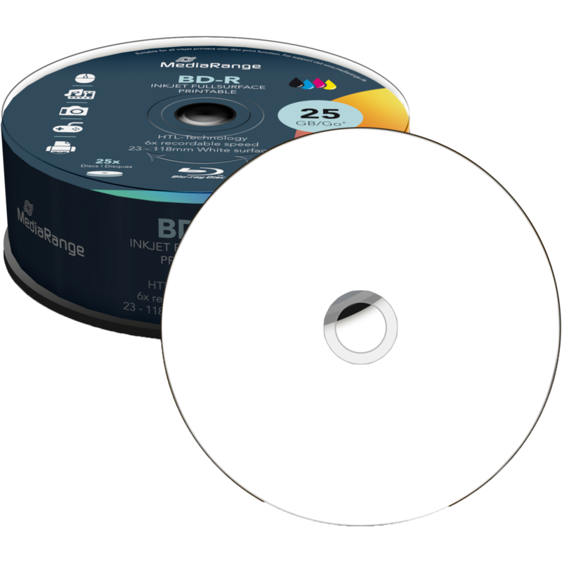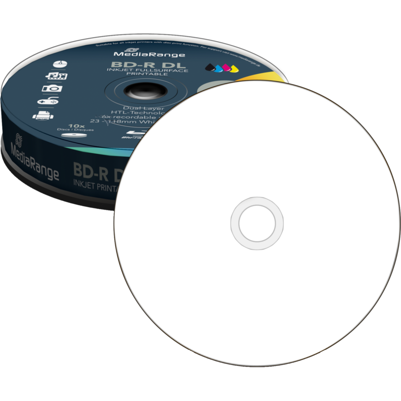 MediaRange BD-R 50 GB Blu-ray-Rohlinge, 6fach, 10 Stück, bedruckbar