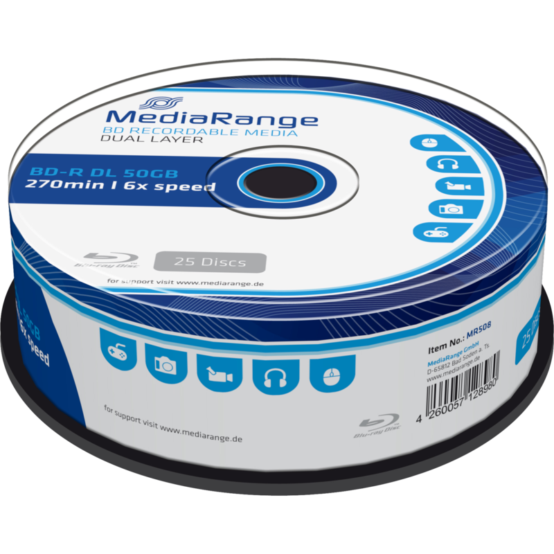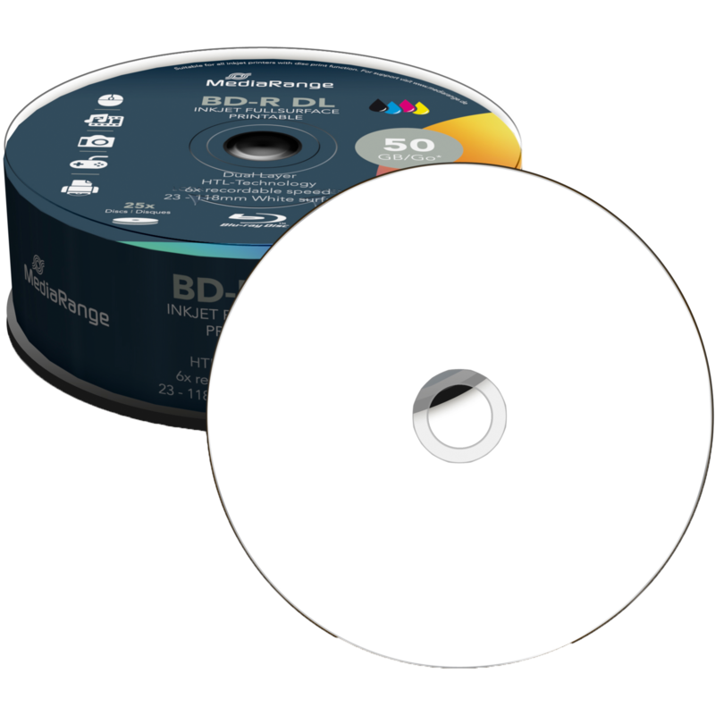MediaRange BD-R DL 50 GB Blu-ray-Rohlinge, 6fach, 25 Stück